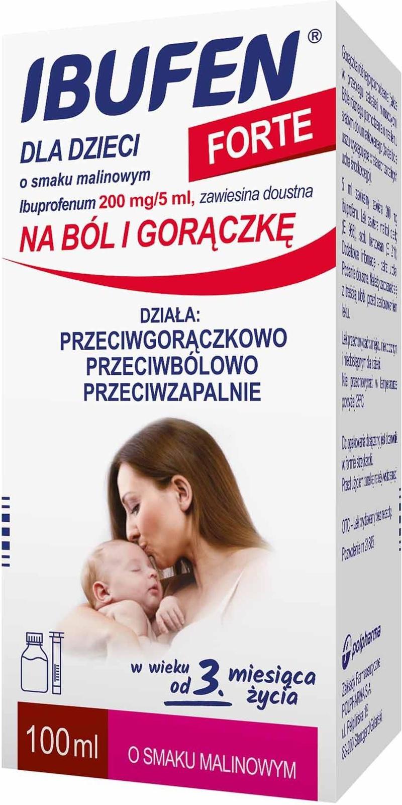 • Ibuprofen forte to popularny lek przeciwbólowy i przeciwgorączkowy dla dzieci, skutecznie niwelujący dolegliwości takie jak bóle czy gorączka.